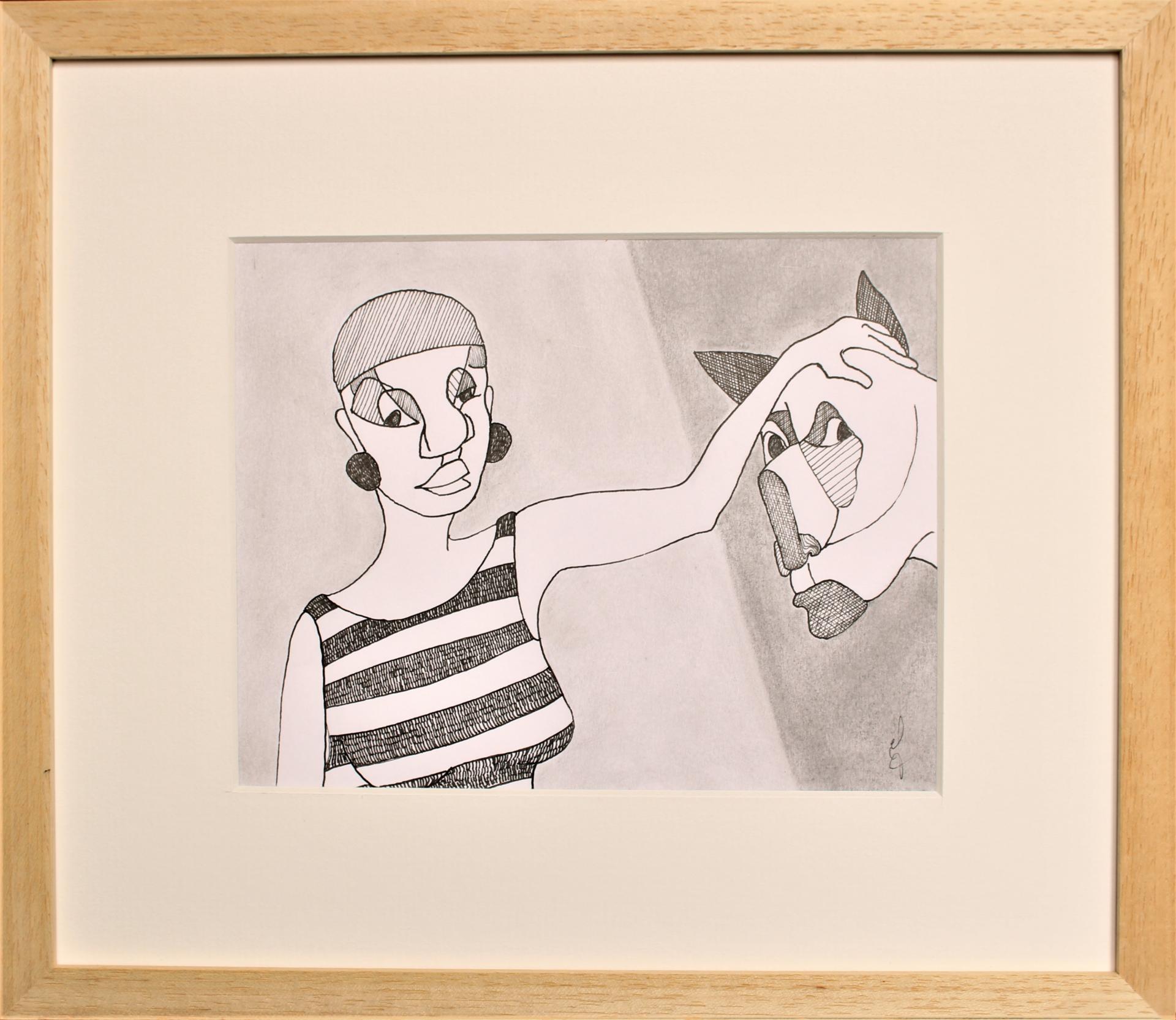 Les Minérales, dans cet esprit singulier, se cachent et se révèlent dans les reliefs fragmentés et accidentés de parois rocheuses, dans des morceaux de falaises lacérés de rides. Et tous ces traits enchevêtrés dessinent des visages, des expressions qui à leur tour, racontent des histoires. Dessins au feutre fin et crayon graphite sur papier.
